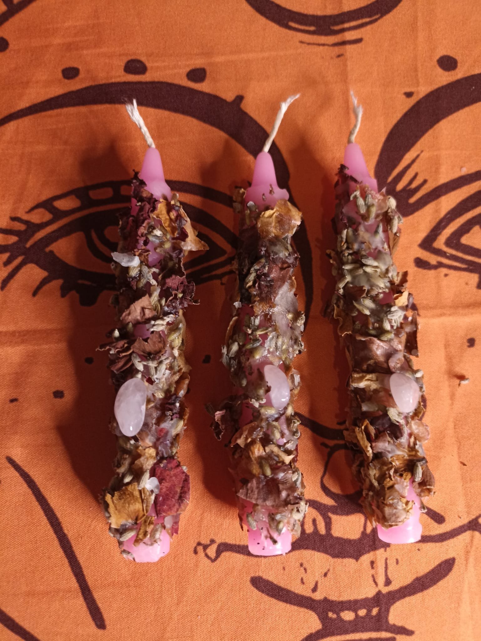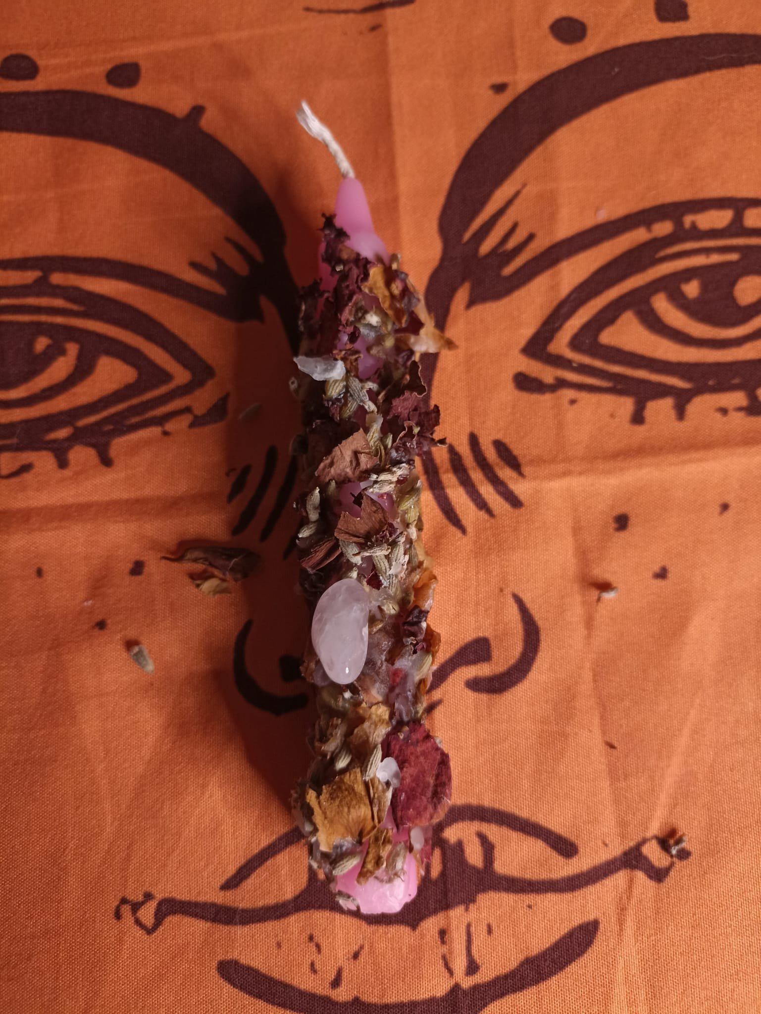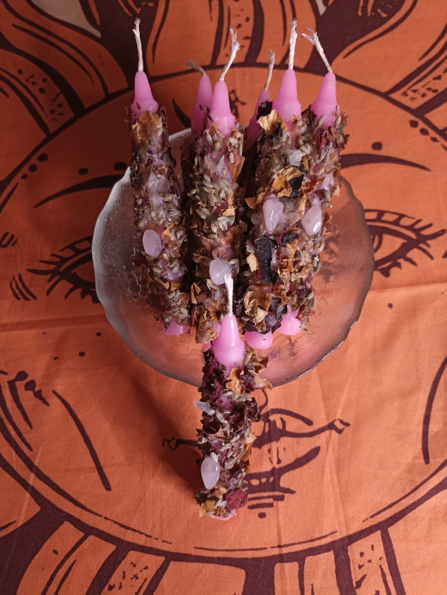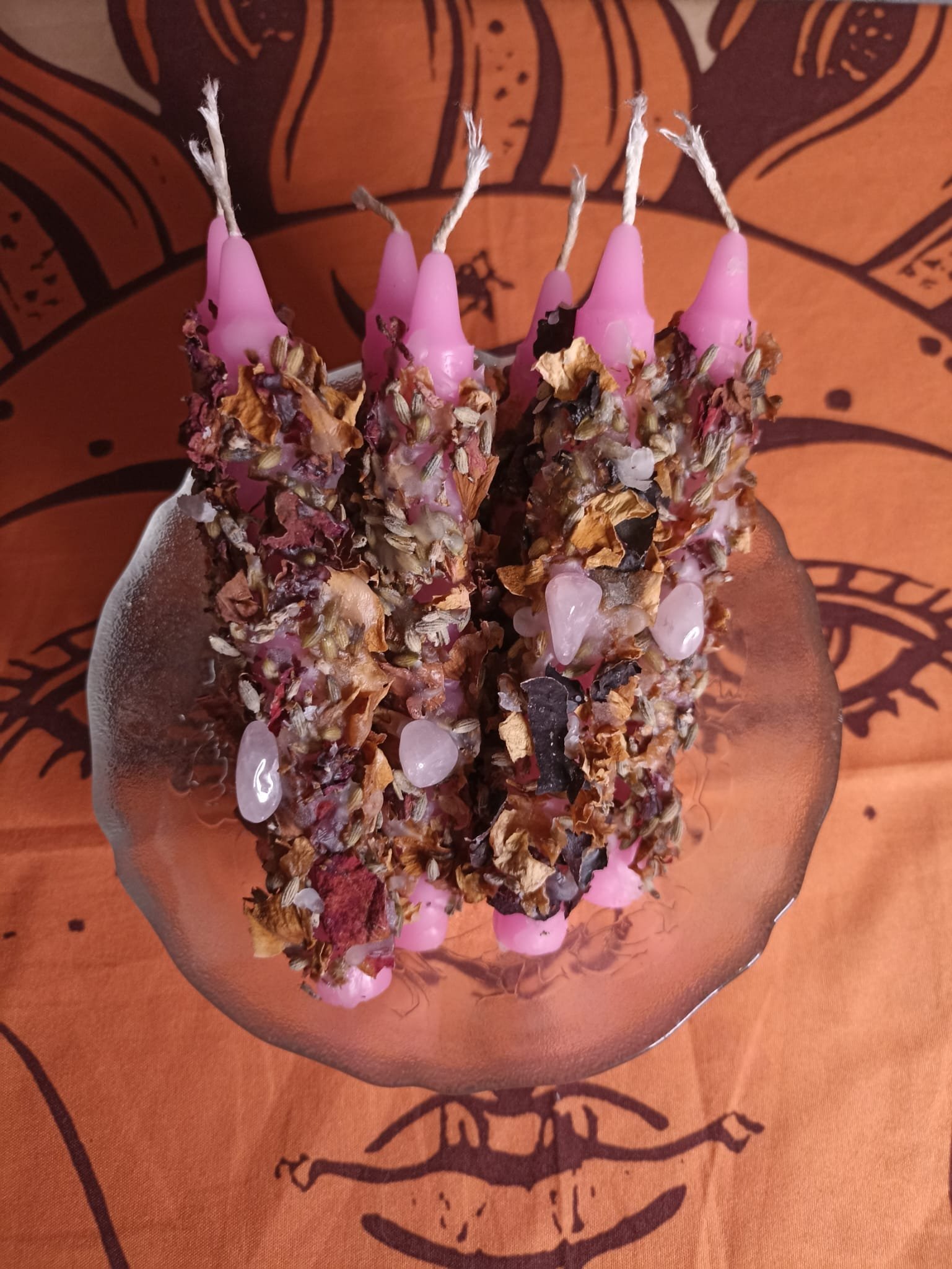 - Vela vestida con diferentes hierbas aromáticas, minerales y aceites esenciales